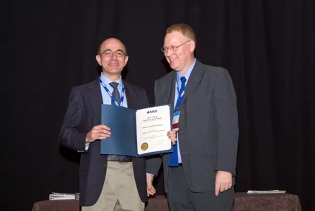 April 6, 2011: Dr. Pellegrino receives the AIAA 11th Gossamer Forum best paper award at AIAA SDM Conference in Denver, April 2011. The award was presented to Xiaowei Deng and Sergio Pellegrino for the paper Wrinkling of Orthotropic Viscoelastic Membranes.